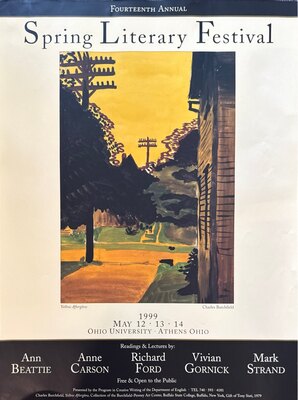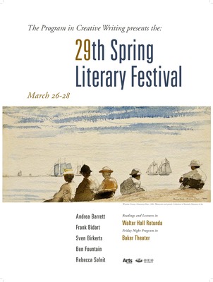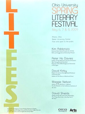 Since 1986, the Spring Literary Festival has featured some of the world's finest, most distinguished writers of poetry, fiction and non-fiction. The three-day festival is held in April on the Ohio University main campus in Athens, OH. The festival is sponsored by the Creative Writing program in the English Department and is generously funded by the College of Arts & Sciences. More about the Spring Literary Festival.
